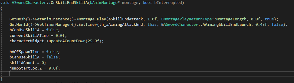 6초뒤에는 무조건 OnSkillEndSkillA함수가 호출이됩니다