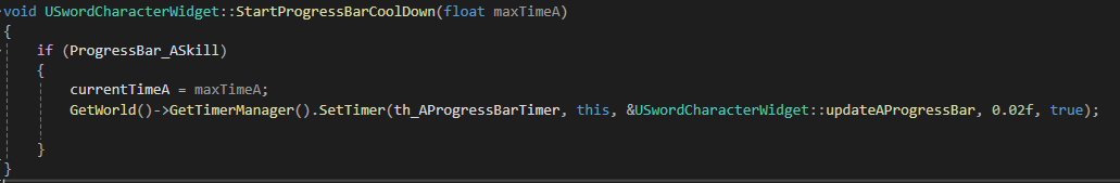 호출할때 필요한 StartProgressBarCoolDown함수를 만들어줍니다