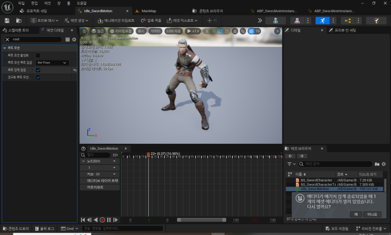 그리고 루트모션이 틀어지지않게 고정해주는작업을해준다