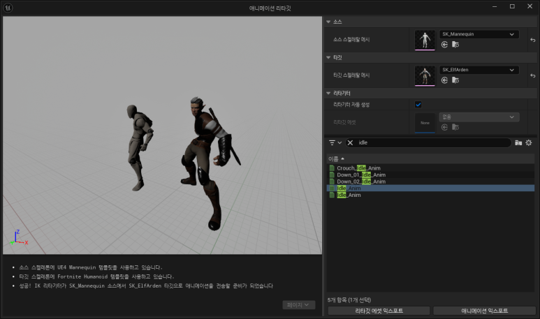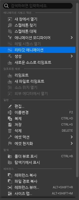 리타겟 애니메이션을 누르고 타깃에 내가 적용시키고싶은 캐릭터를 넣어준뒤