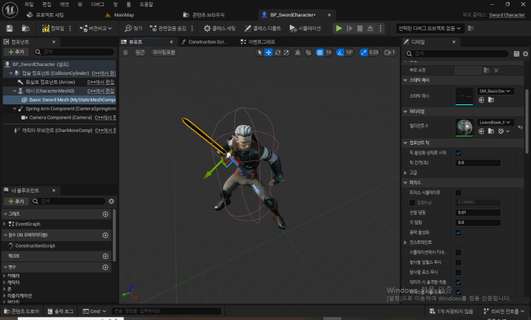 UStaticMeshComponent로 basicSwordMesh로 내가 달아줄 칼 컴포넌트를 만들고