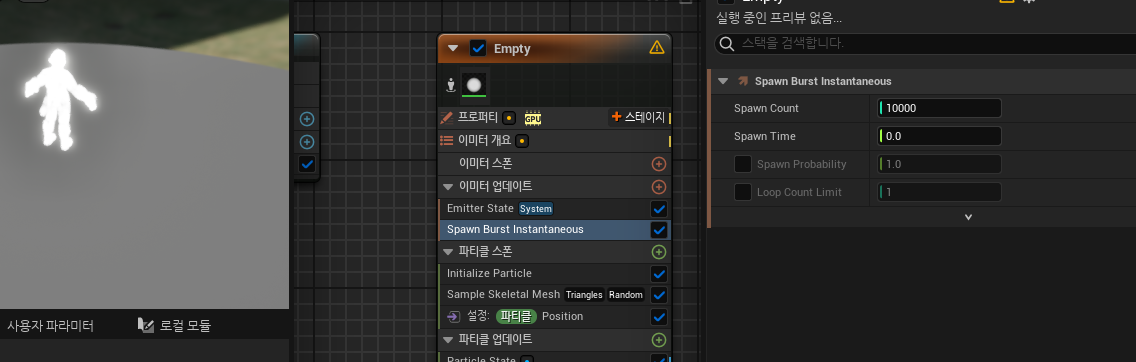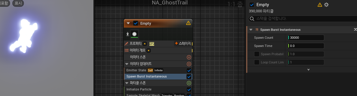 값이 부족해보이니 SpawnCount를 10000으로 설정하도록하겠습니다