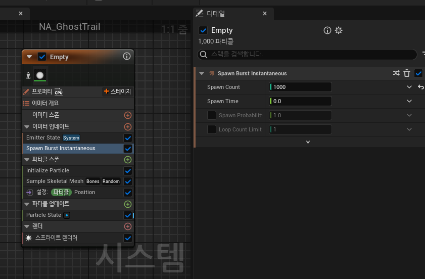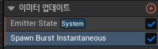 Emitter Update에 Spawn Burst Instantaneous를 추가해줍니다