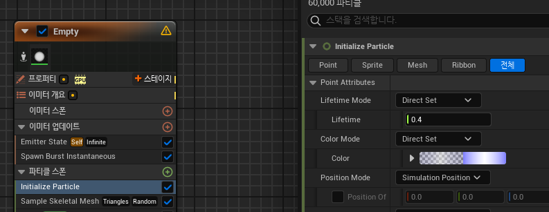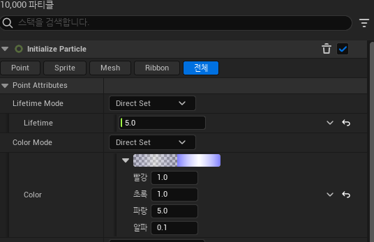Initialize Particle -> ColorMode를 DirectSet으로 변경