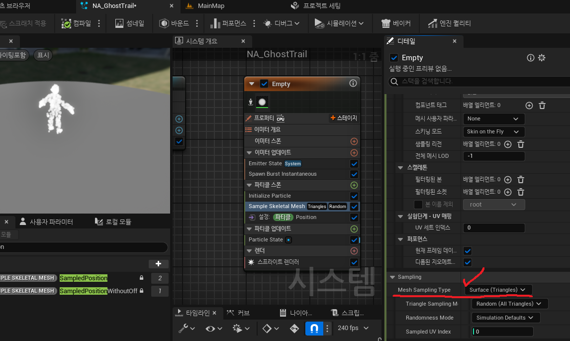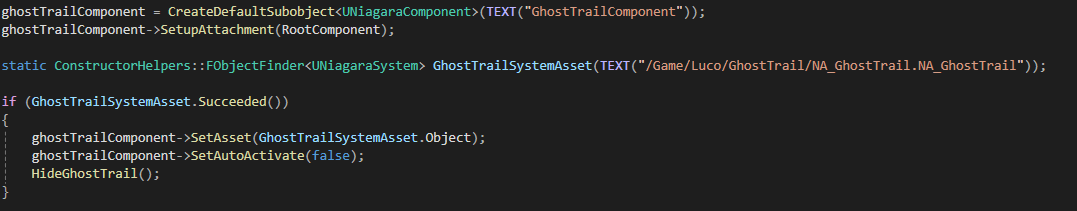 해당 나이아가라를 할당해줬고 HideGhostTrail함수와 SetActivate로 자동실행을 false로 설정해