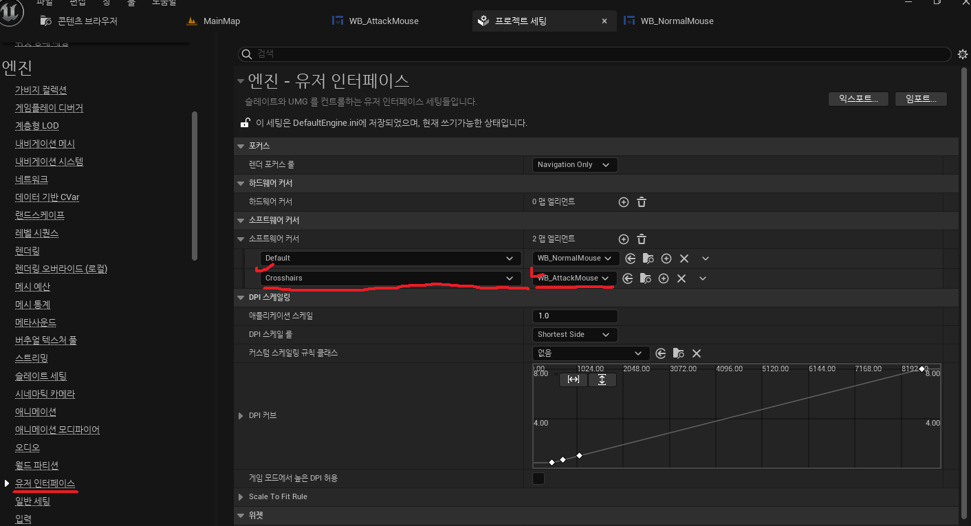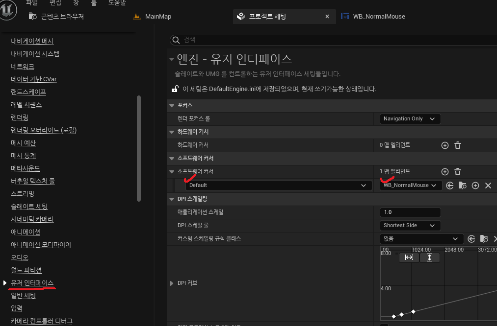 프로젝트세팅 - 유저인터페이스 - 소프트웨어 커서