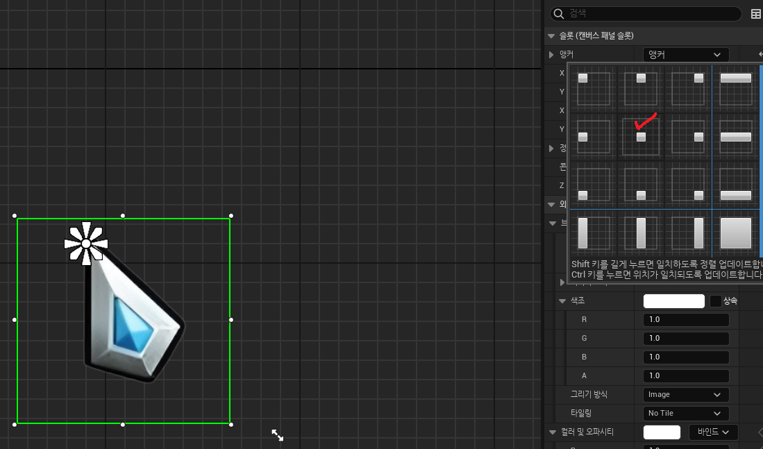 앵커가 가르키는곳이 곧 클릭 위치가 됩니다 마우스의 끝을 앵커로 맞춰주시면되겠습니다