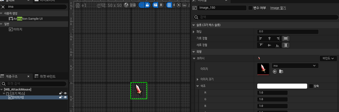 한개는 기본마우스 한개는 공격용 마우스 두가지를 위젯블루프린트를 만들어주겠습니다