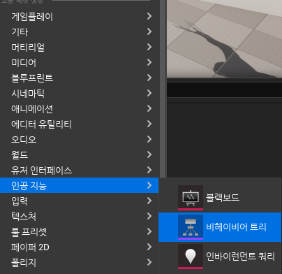 | Behavior Tree | AI가 어떤 행동을 할지 결정하는 두뇌역할을 하는 Tree(구조체) |