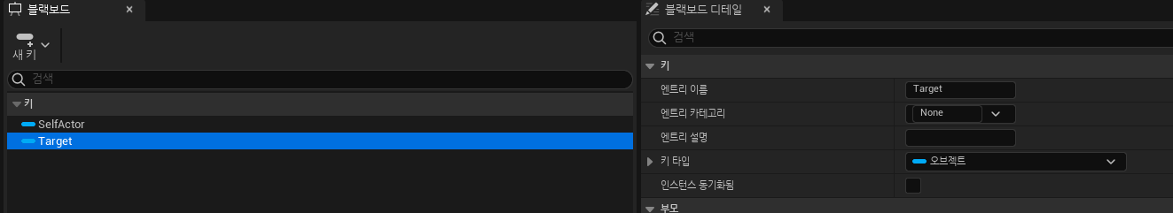 블랙보드에서 Object형식의 Target이름을 가진 블랙보드키를 만들면