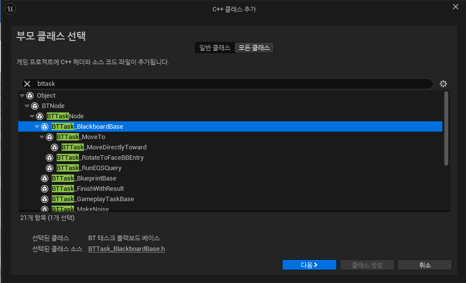 블랙보드에 넣을 blackboardbase c++클래스를 추가하고 코드를 추가해주겠습니다