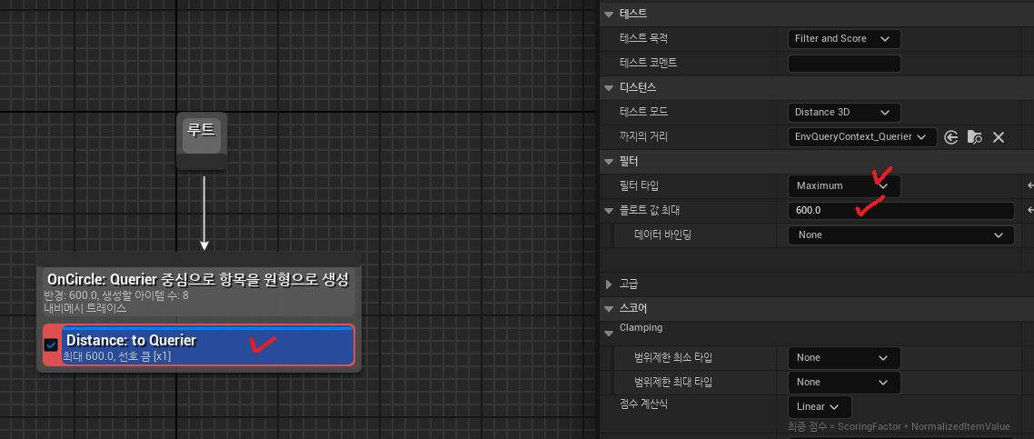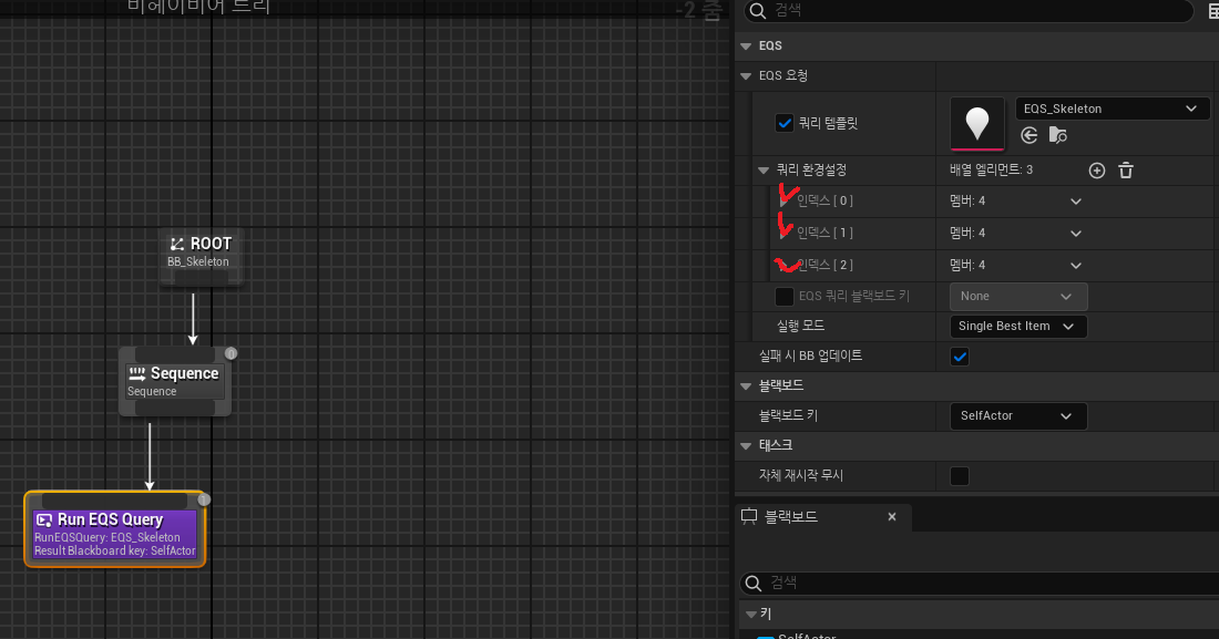 BehaviorTree에서 Run Eqs Query노드에서 인덱스값을 설정해준뒤
