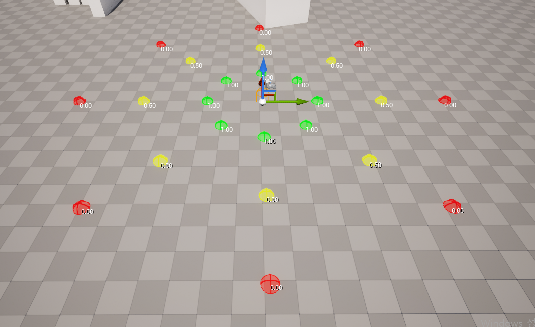 TestingPawn 후방기준으로 아이템의 결과값이 도출되며 전방의 Dot은 0의 점수를 가지게됩니다