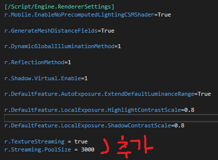 Config 폴더에 있는 DefaultEngine.ini 의 코드를 변경하겠습니다
