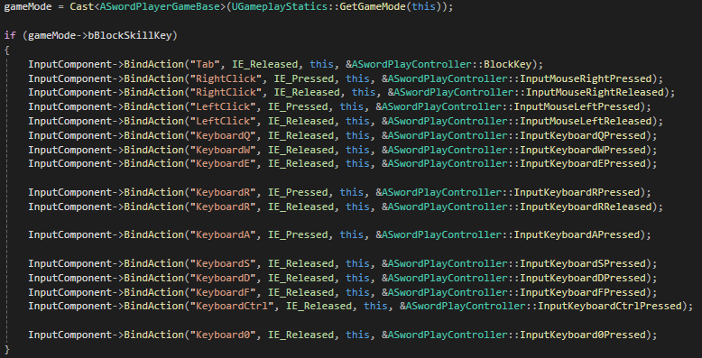 게임모드를 캐스팅해서 변수에 따른 Tab을 BlockKey함수로 변경해주겠습니다