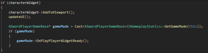 ASwordPlayerGameBase* gameMode = Cast<ASwordPlayerGameBase>(UGameplayStatics::GetGameMode(this));