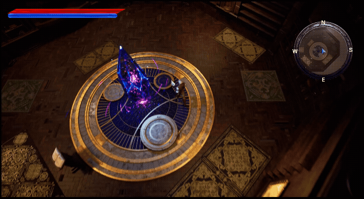 SpringArm이 1000으로 변경되어 시점이 더욱 위로 올라가고 스킬의 UI가 보이지않는것을 확인할수있습니다