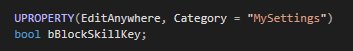 UPROPERTY(EditAnywhere, Category="MySettings")