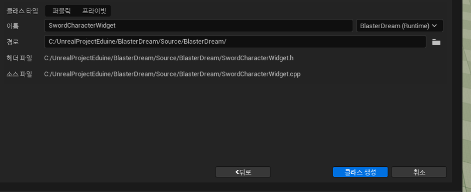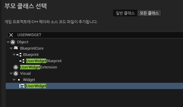 UserWidget을 생성해준다