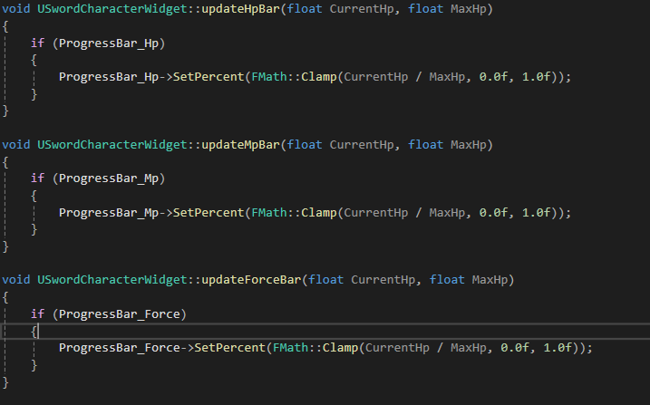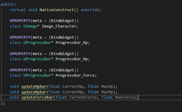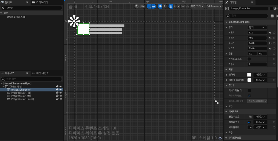 기본 hp, mp force, 캐릭터사진 이렇게 프로그래스바와 이미지를 ui에 추가해주었다