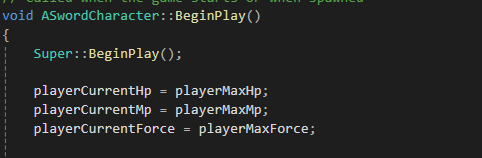 그리고 캐릭터에서 캐릭터의 각 스테이터스값을 설정해줬다