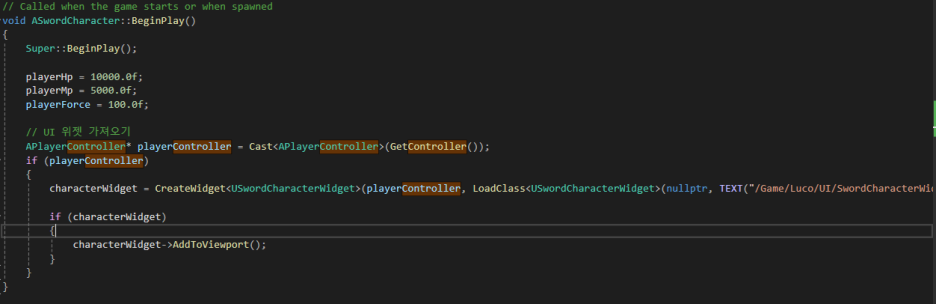 CreateWidget을 하고 하고 AddToViewPort로 뷰포트(화면)에 띄워주었다