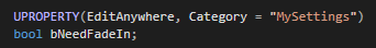 UPROPERTY(EditAnywhere, Category = "MySettings")