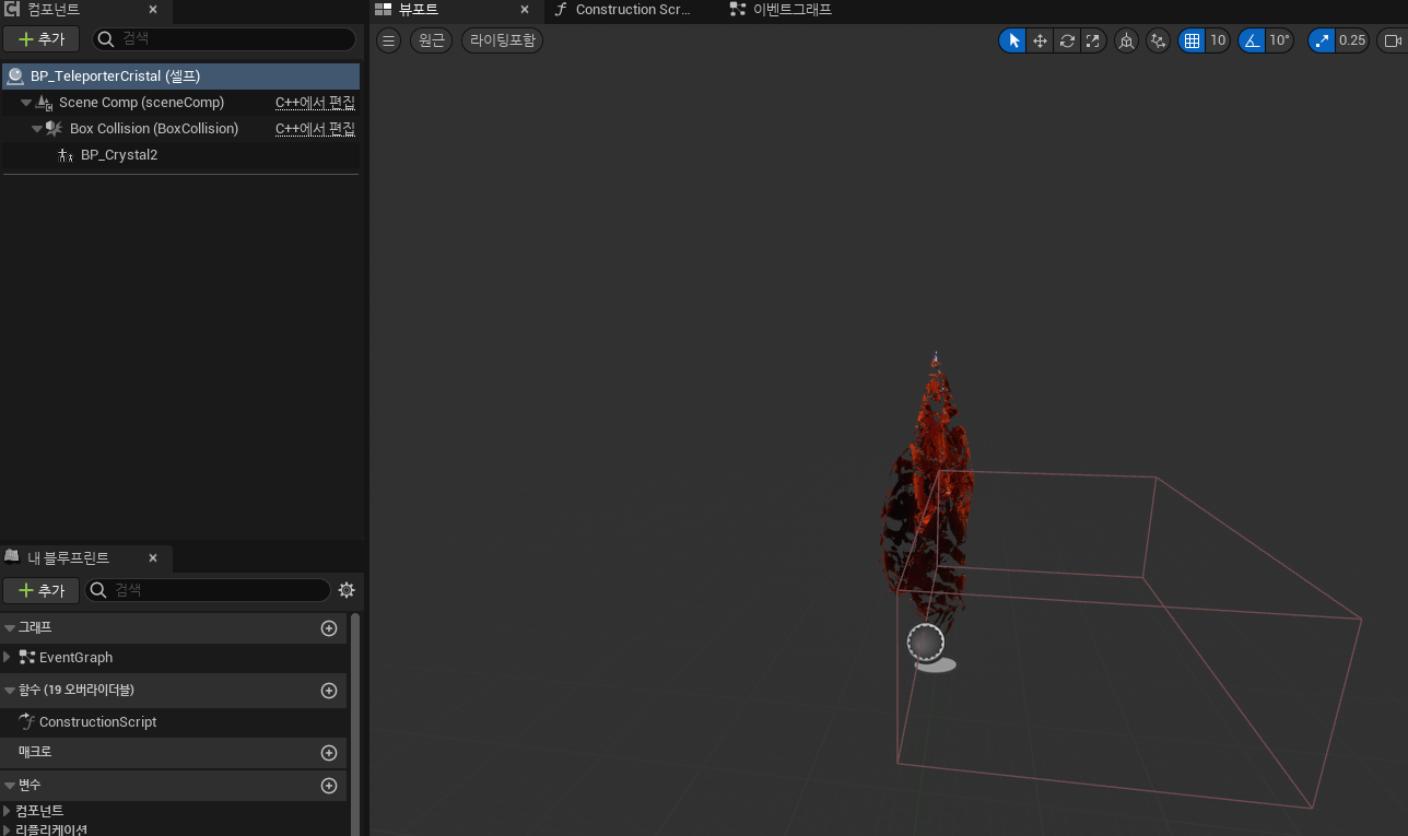오버랩 상호작용할 boxCollision과 루트컴포넌트 씬 컴포넌트를 선언해주고 만들어주었습니다