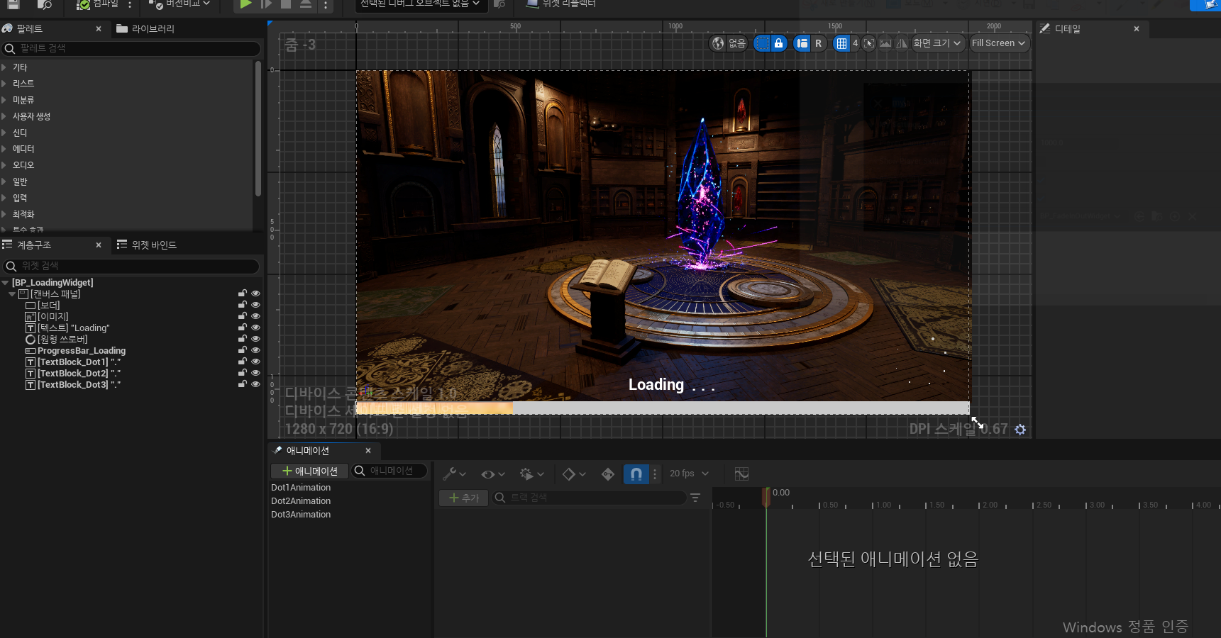 프로그래스바를 업데이트 시켜주며 StartDotAnim()함수는 스마트포인터를 사용하여