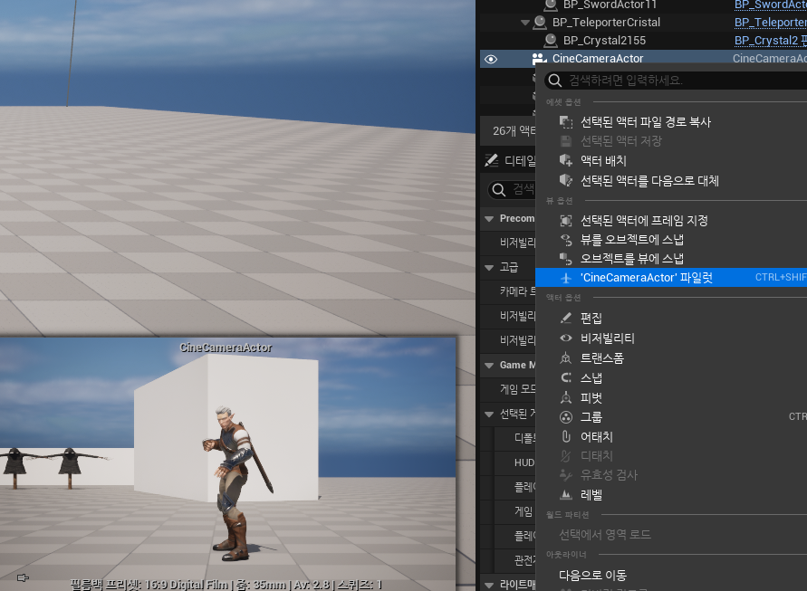 눌러주시게 되면 해당 액터를 중점으로 카메라가 이동합니다