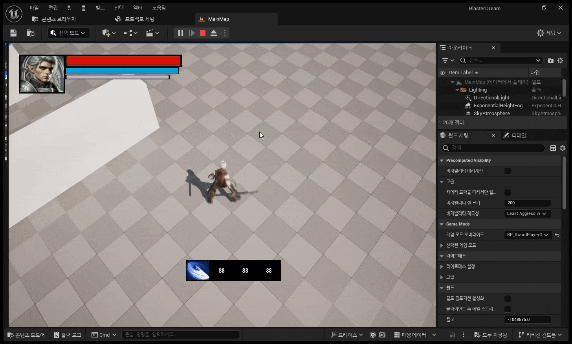 그럼 이제 아까 만든 블루프린트 위젯애니메이션만 작동시키면된다