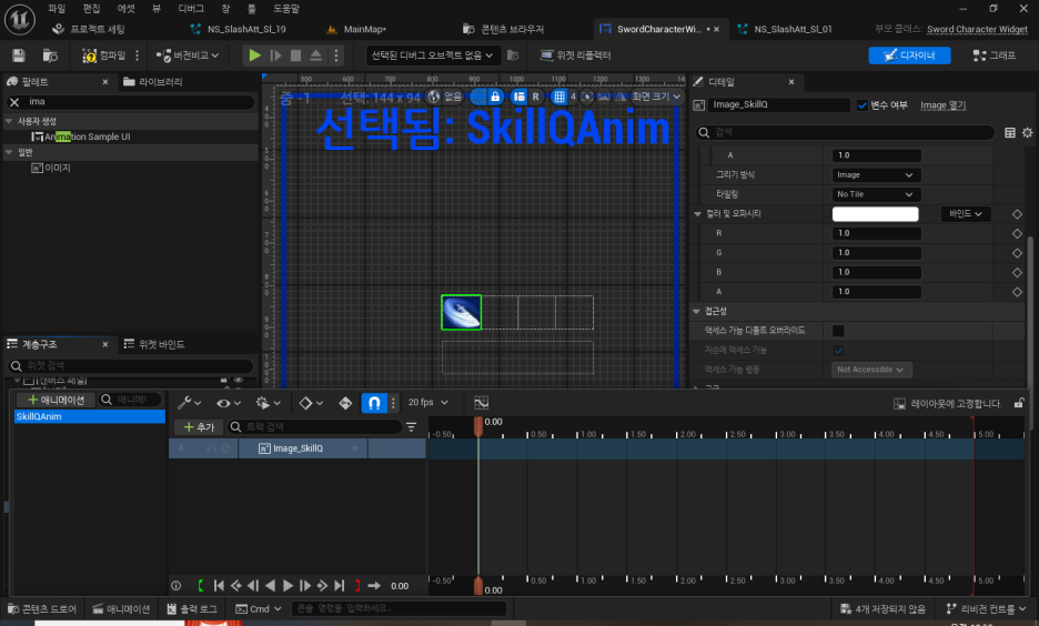 스킬의 위젯블루프린트 애니메이션을 통해 스킬쿨타임을 시각적으로 보여주는걸 만들어보자