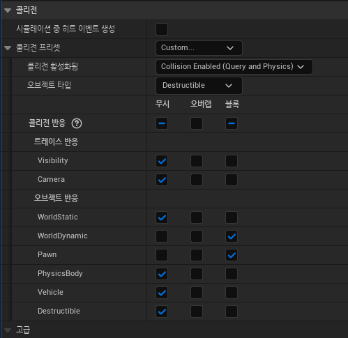 Pawn과 WorldDynamic에 블록 판정을 하여 플레이어가 벽이 부숴지기전에 지나갈수 없도록 합니다