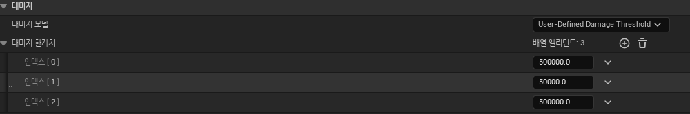우선 벽이 쉽게 부숴지지않게 Damage Threshold(데미지한계치) 를 올려놓은 상태입니다