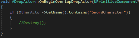 void ADropActor::OnBeginOverlapDropActor(UPrimitiveComponent* OverlappedComponent, AActor* OtherActor, UPrimitiveComponent* OtherComp, int32 OtherBodyIndex, bool bFromSweep, const FHitResult& SweepResult)