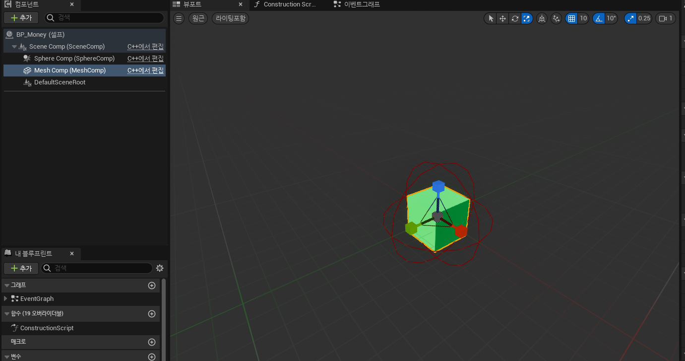 아이템의 부모가 될 C++클래스를 생성후 콜리전 그리고 메시를 할당해줍니다