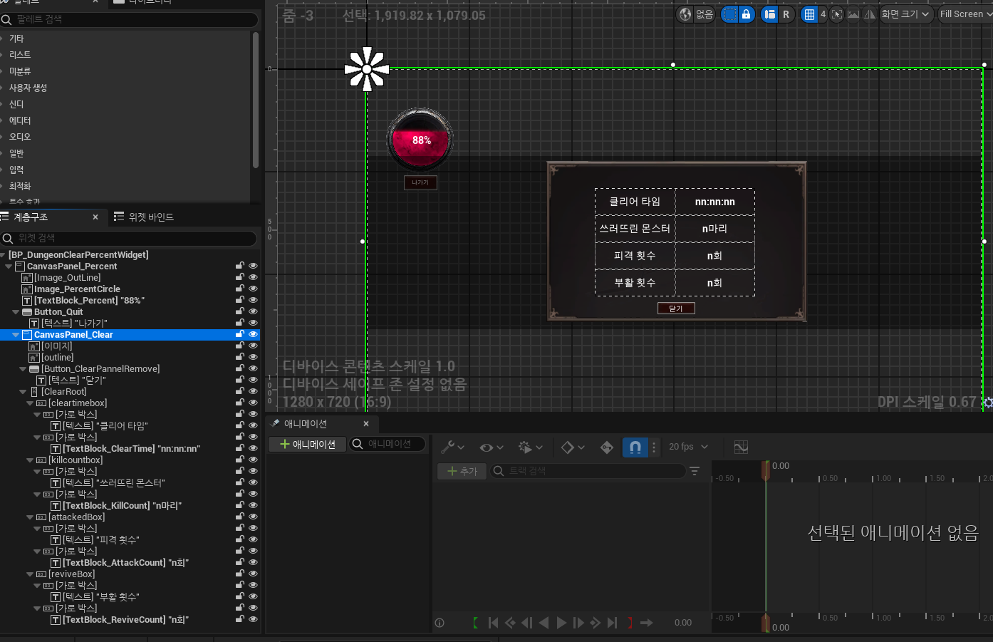 던전을 클리어했을때 던전에서 플레이했던 내용을 기록하는 클리어 위젯을 만들어보도록하겠습니다