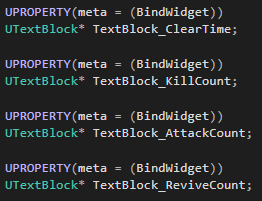 각각 클리어타임, 킬카운트, 피격횟수, 부활횟수에 대한 변수값을 바인드해줍니다