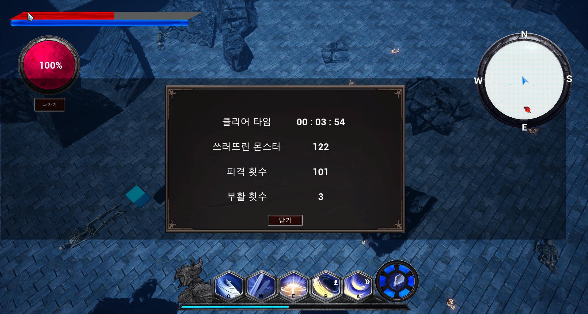 구성할 내용은 클리어타임, 쓰러뜨린 몬스터수, 피격횟수, 부활횟수 총 4개입니다