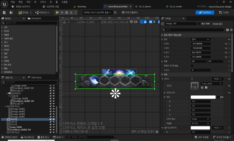 스킬도 이미지를 추가후 해당 육각형 안에 스킬을 옮기는 작업도 시작했다