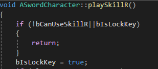 보면 r키를 누루면 캐릭터가 launch함수가 실행되어 크게이동 하고 1초동안 우클릭과 좌클릭의 입력을 받을수없게되었다