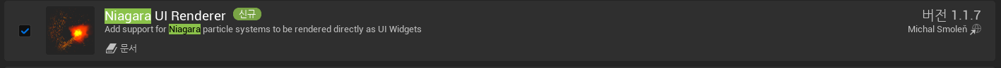 Niagara UI Renderer을 설치해줍니다