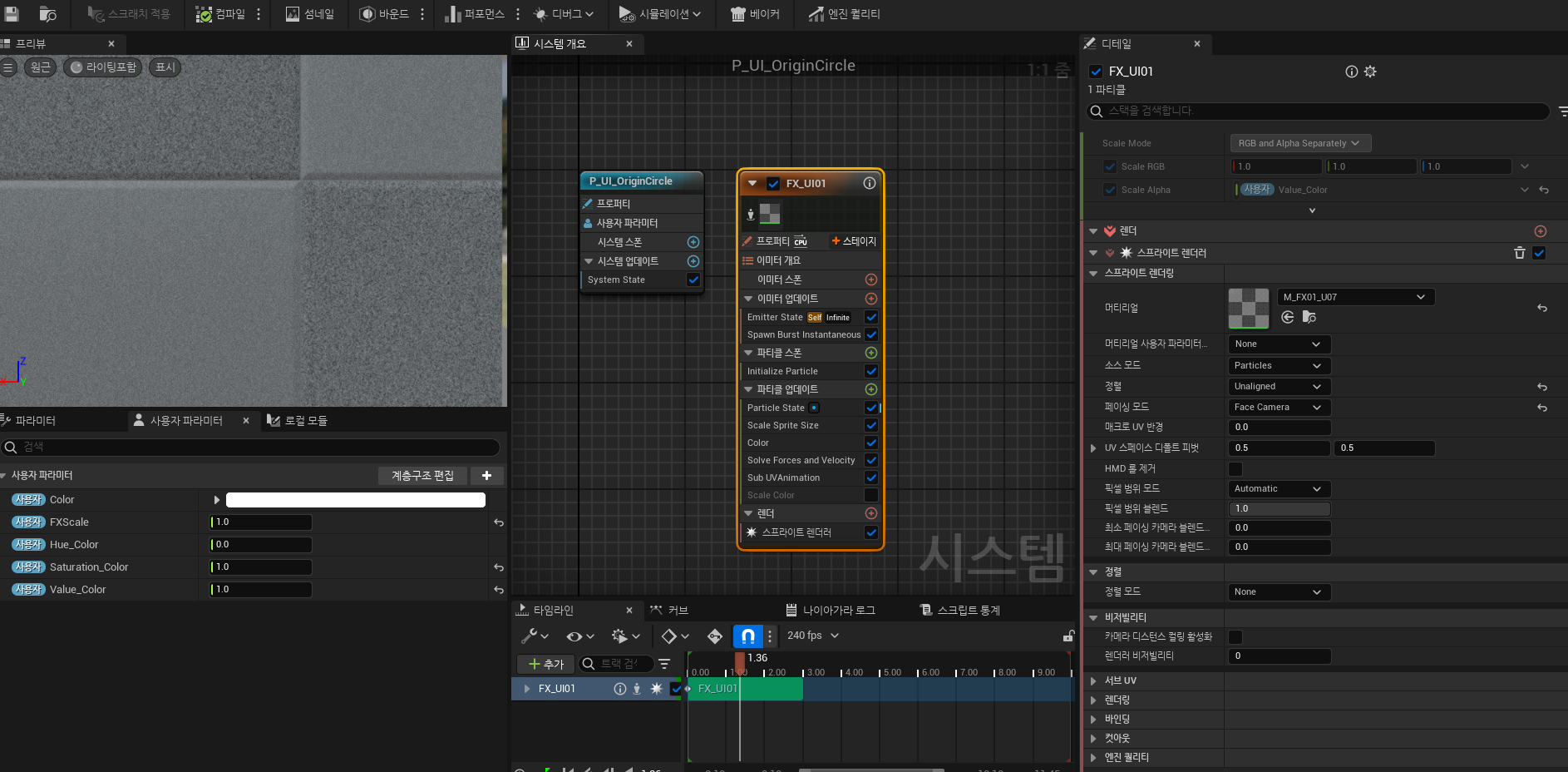 언리얼위젯에 나이아가라 또는 파티클을 위젯에 넣을려면