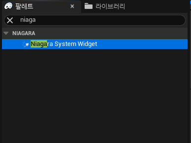 팔레트에서 Niagara System Widget을 꺼내줍니다