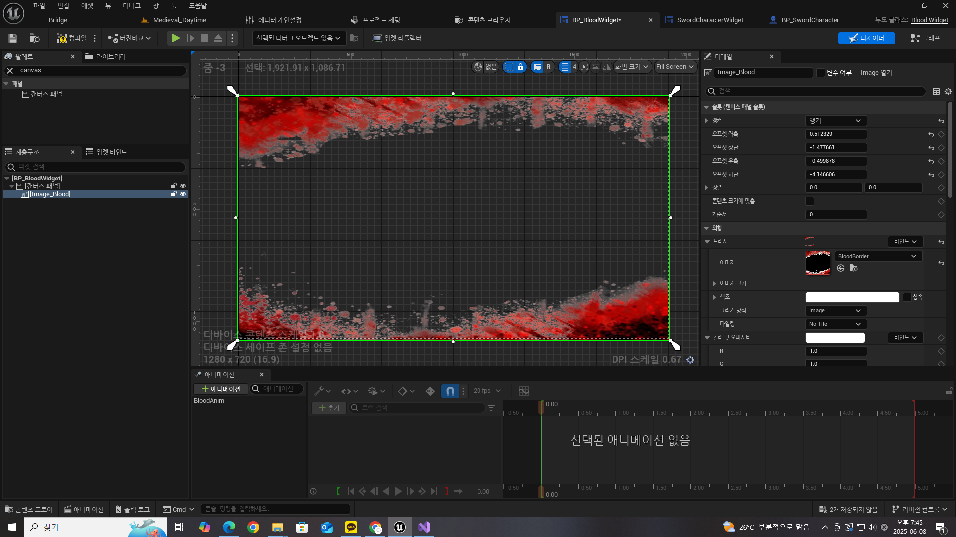 사용할 데미지 오버레이 img를 구해준뒤 캔버스패널에 넣어줍니다