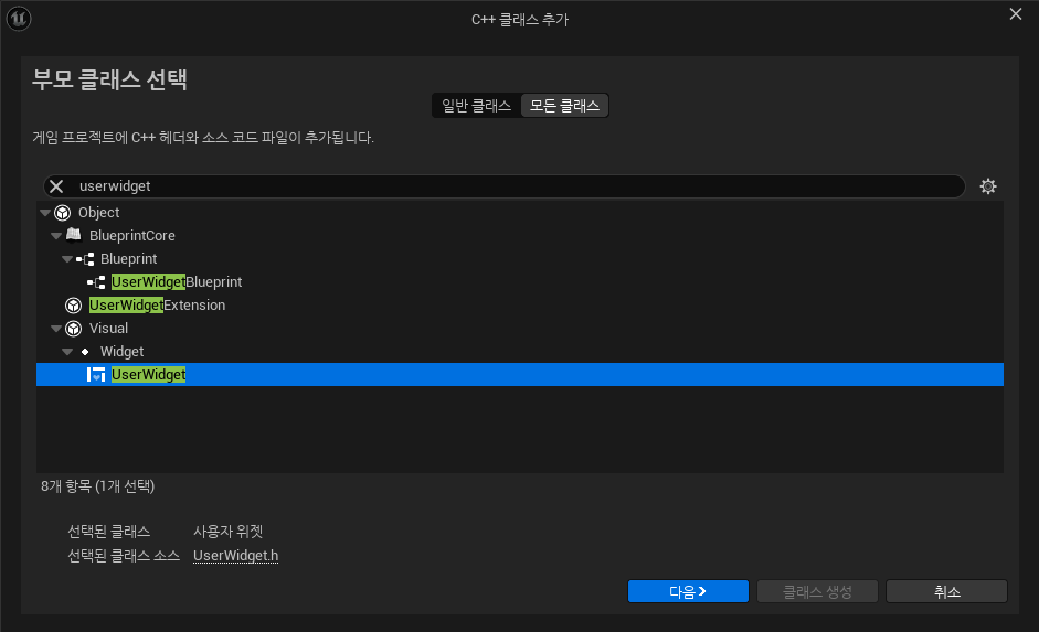 플레이어 BeginPlay에서 위젯을 미리 띄워두고 숨겨둡니다
