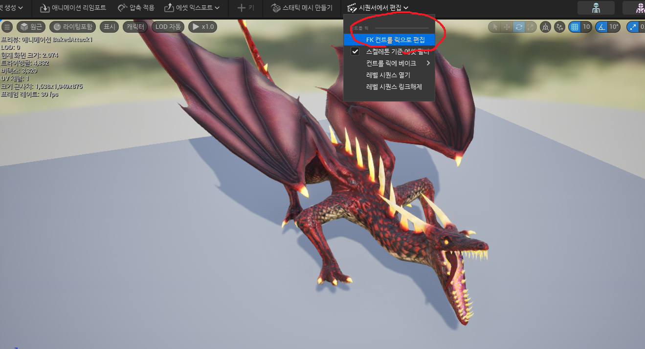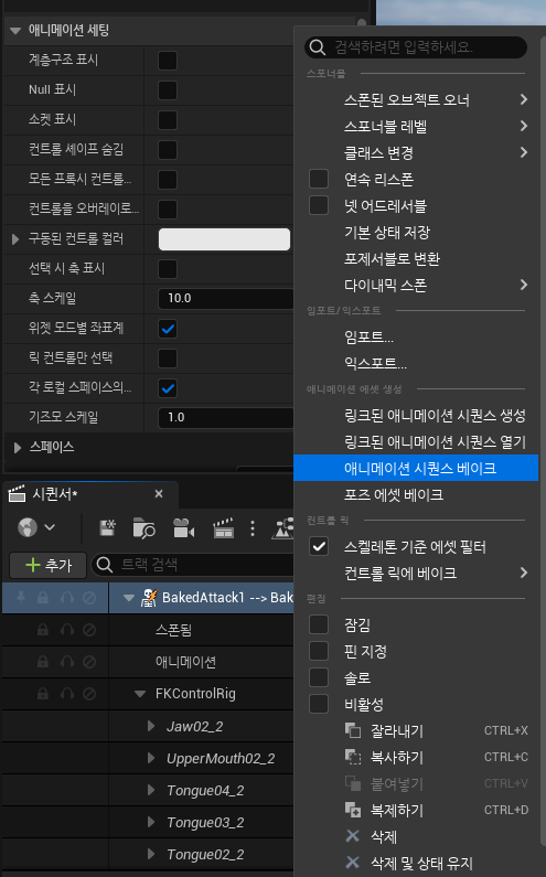 시퀀스에서 FK컨트롤 릭으로 편집을 눌러줍니다