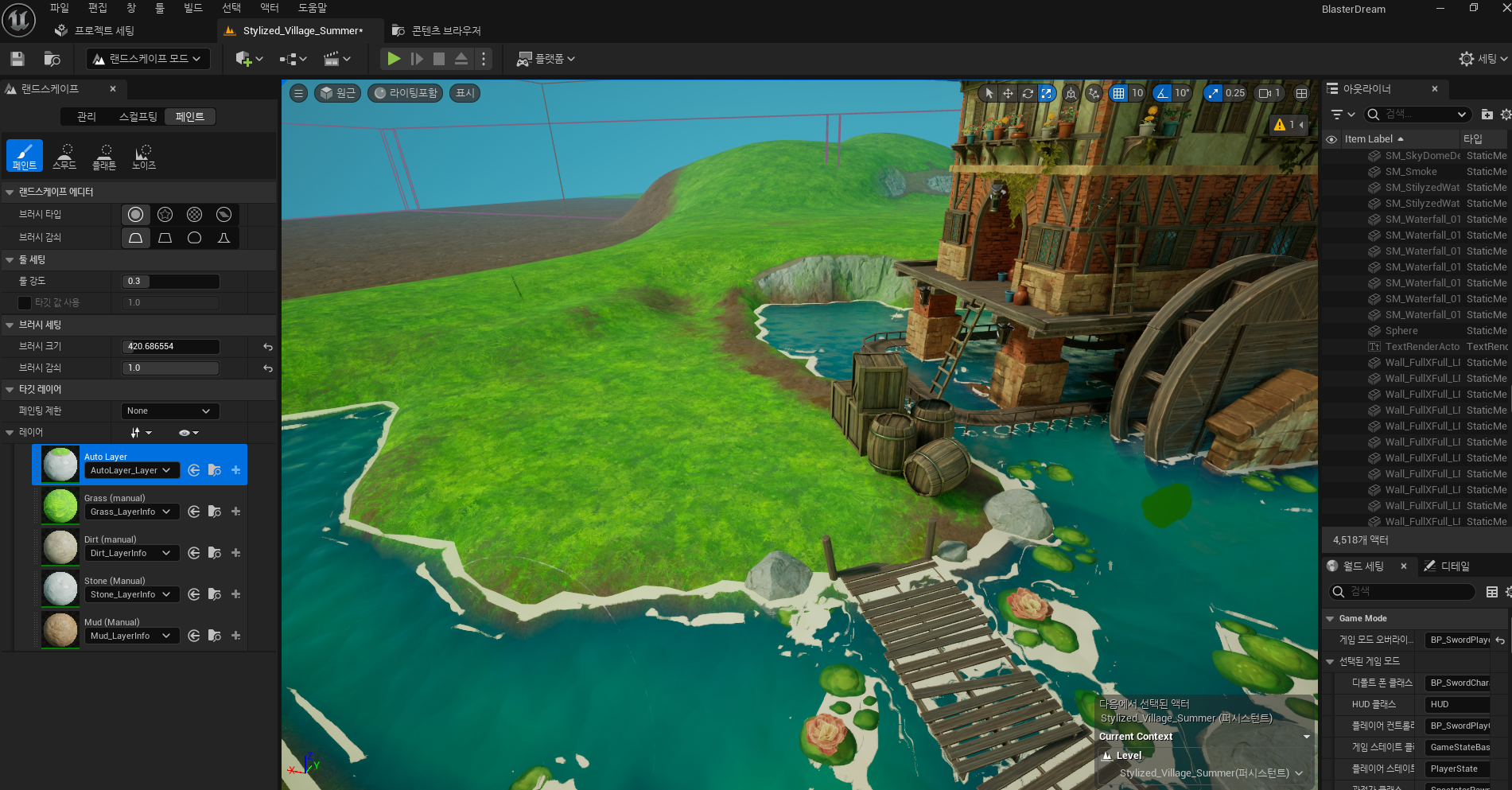 지형의 재질과 알맞게 레이어를 페인팅해줍니다